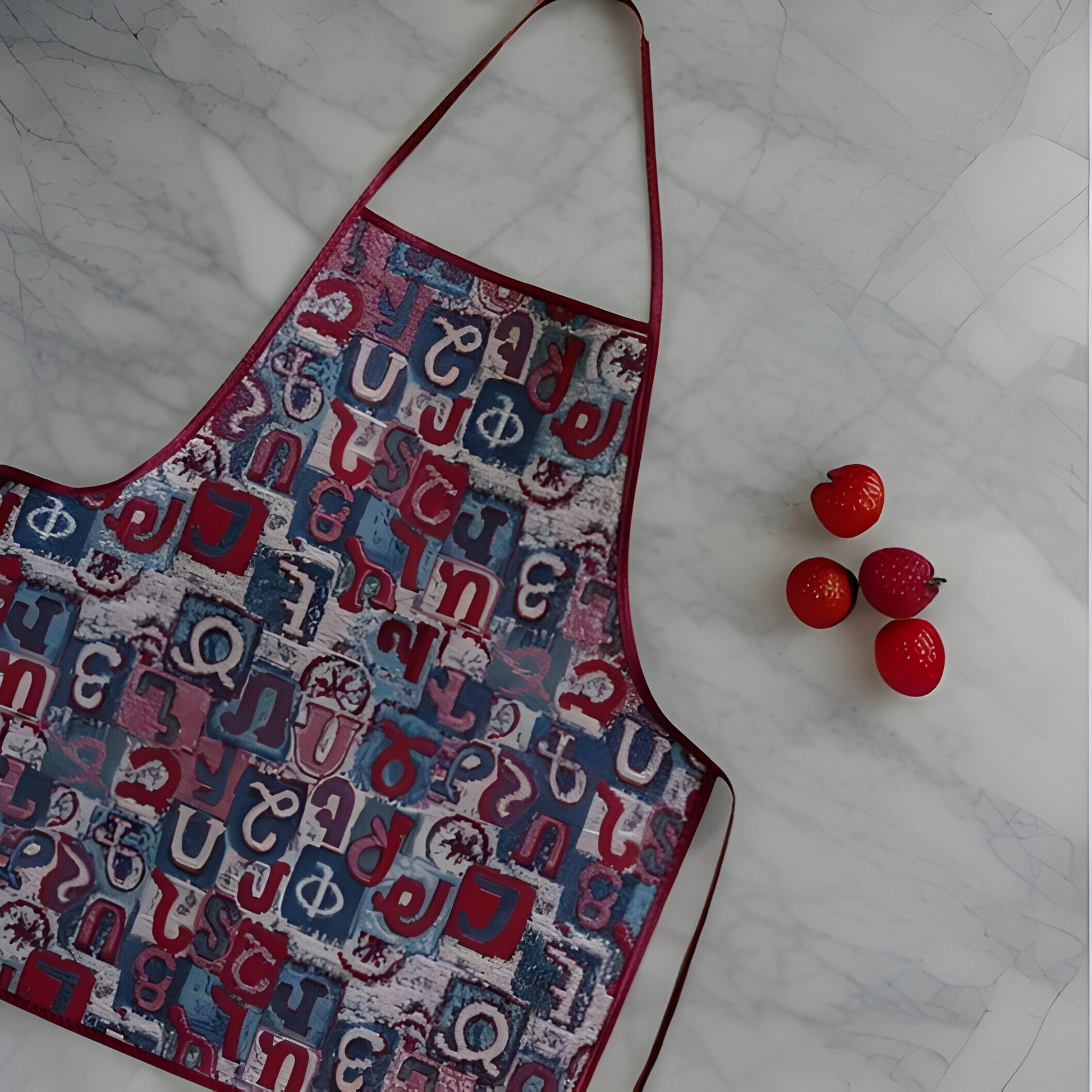 Each apron features traditional Armenian art and the Armenian alphabet, making them not only practical but also a beautiful display of heritage. Crafted with care and attention to detail, these aprons are made to withstand the rigors of the kitchen while adding a touch of elegance to your cooking experience.