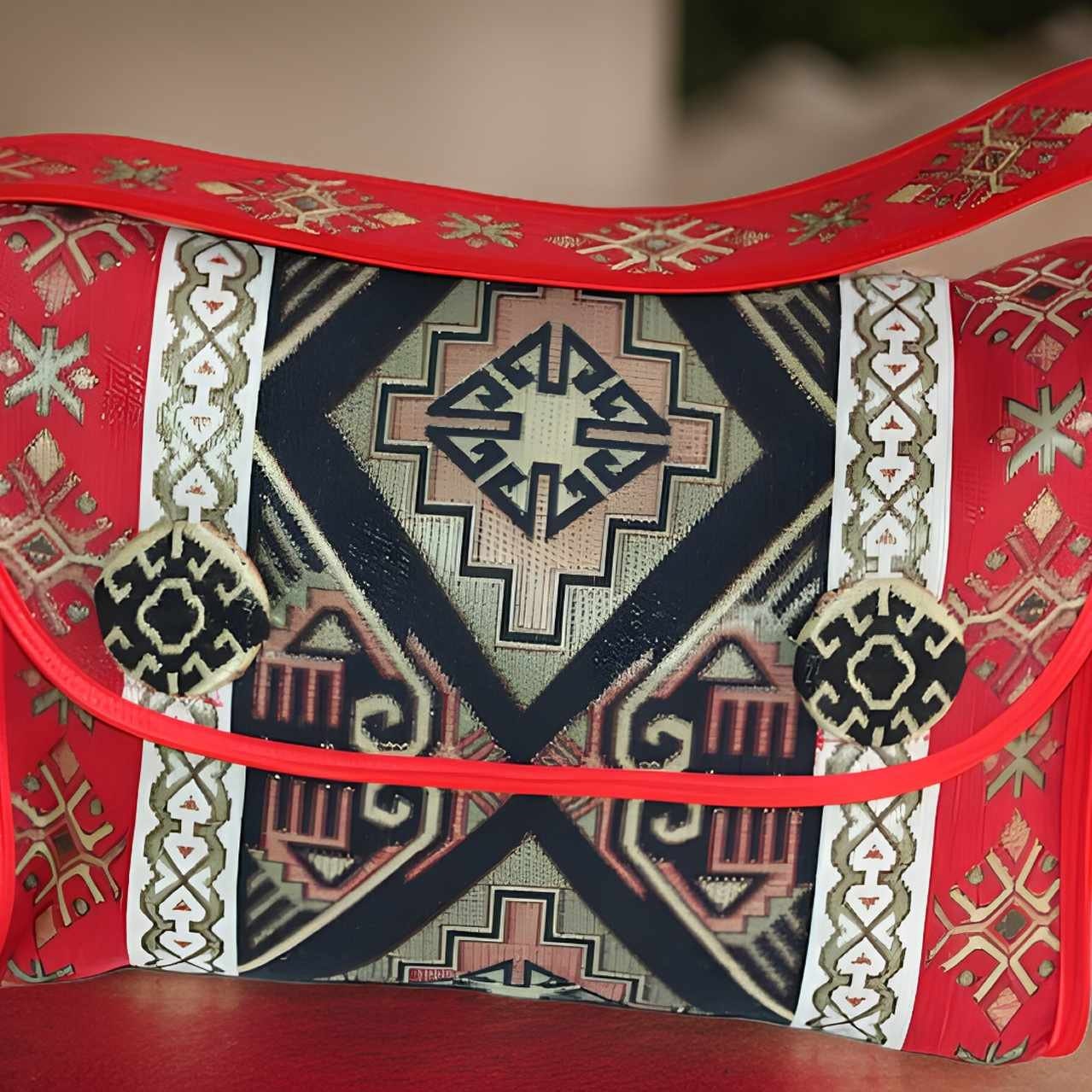 🌟 Intricate Rug Design: The bag features stunning Armenian motifs inspired by traditional rug patterns, meticulously woven into the fabric. These rich, red motifs add a touch of elegance and cultural significance to your outfit.